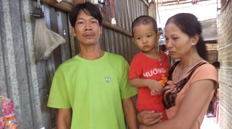 | Vợ chồng anh Phạm Ngọc Thanh với nỗi đau mất con. |