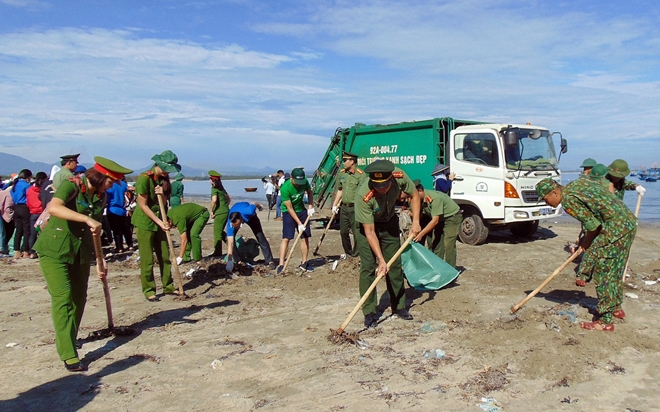 | Khoảng 300 ĐVTN và người dân địa phương đã tham gia hoạt động “Hãy làm sạch biển” tại biển Thuận An, xã đảo Tam Hải, Quảng Nam. |