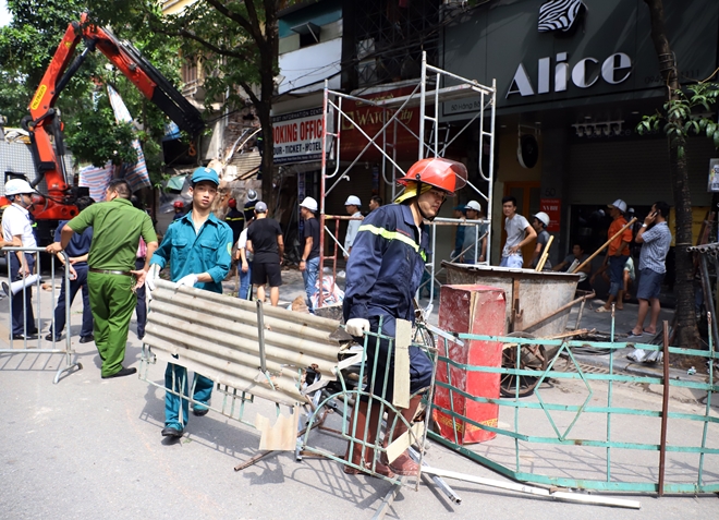 Thông tin từ Công an quận Hoàn Kiếm cho biết sự cố không gây thiệt hại về người. Cảnh sát và công nhân thi công được điều động khẩn trương giải phóng hiện trường.