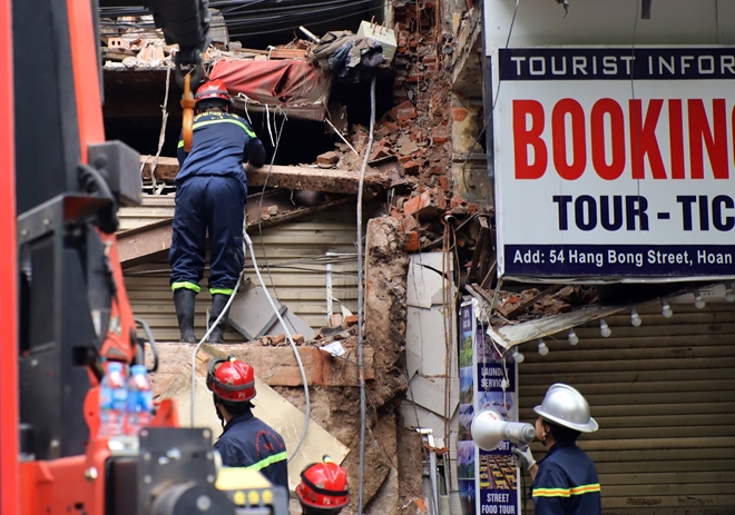 Thông tin thêm cho PV, Trưởng Công an phường Hàng Gai Trần Danh Hiếu cho biết, ngay sau khi nhận được thông tin vụ sập nhà, lực lượng cứu hộ cứu nạn Hà Nội đã huy động xe cứu hộ và hàng chục chiến sĩ đến hiện trường. Nói về nguyên nhân ban đầu vụ sập nhà, đồng chí Hiếu cho biết, do biển quảng cáo của cửa hàng này quá nặng nên khi có gió đã bị kéo sập xuống.