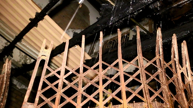 | Cửa sắt bị phá trong lúc xảy ra vụ cháy |