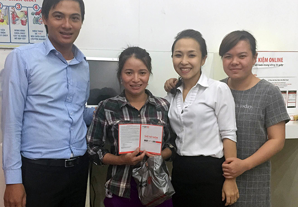 Chị Huỳnh Thị Ánh Hồng hoàn tất giao dịch tại Phòng giao dịch Phan Xích Long.
