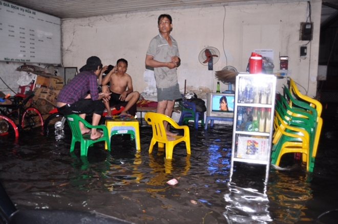 Chỉ cách nhà hơn 300m nhưng phải mất hơn 1 giờ chị Khanh mới vào được nhà trong tình trạng ướt sũng. Tuy nhiên vẫn chưa được yên, do đường An Dương Vương có đoạn vừa nâng nên nhà chị trở thành nơi “chứa nước” từ đường chảy vào, ngập sâu hơn 0,5m.