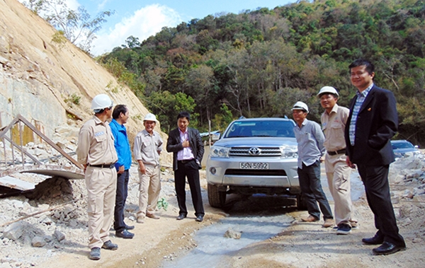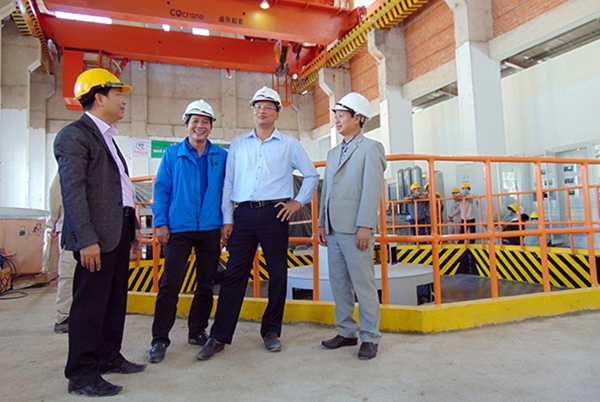 | Lãnh đạo Trung Nam Group kiểm tra công tác thi công tại công trình nhà máy thủy điện Krông Nô 2. |