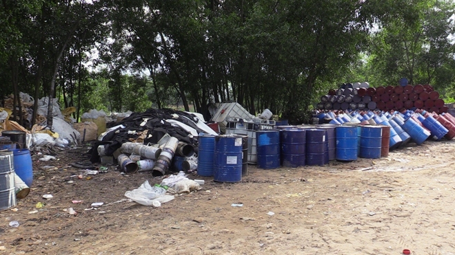 Phát hiện 3000 thùng phi chứa chất thải công nghiệp nguy hại