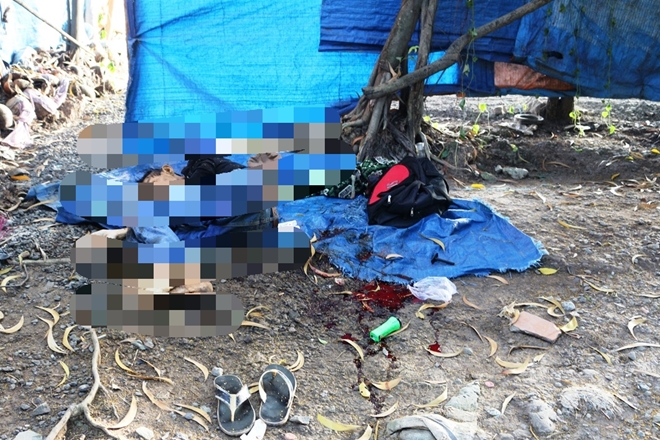 Tại hiện trường nạn nhân khoảng 35 tuổi, cao khoảng 1,6m, người gầy, mặc áo thun đen dài tay, quần jeen. Ngón út của nạn nhân bị cụt, cánh tay phải có hình xăm chữ “T.T.C”, bụng xăm hình chữ “bất”, đùi phải xăm hình rồng, đùi trái xăm 2 chữ “Hận thế”.
