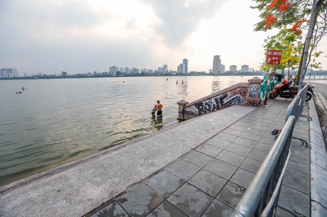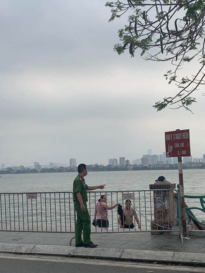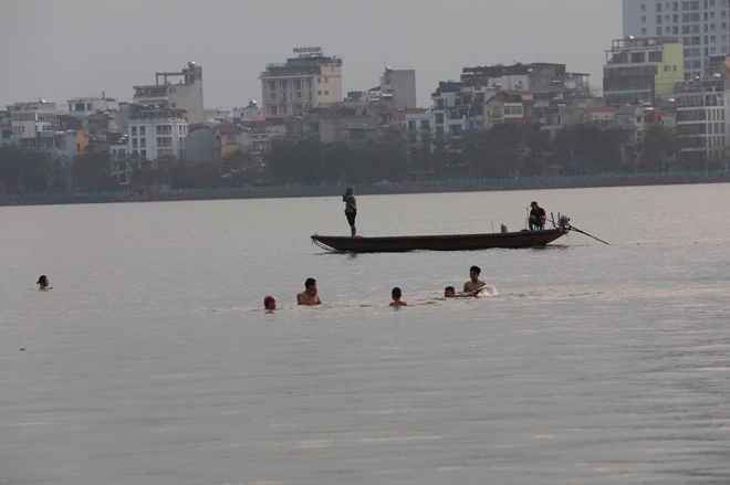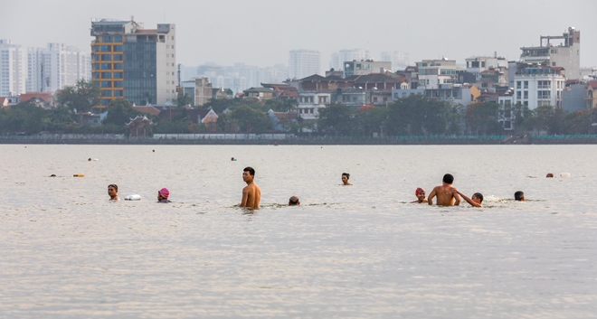 Một nhóm thanh niên trong đó có cả em nhỏ thậm chí còn bơi ra xa bờ để tắm mát cho thỏa thích. Tình trạng người dân ra bờ Hồ Tây để tắm giải nhiệt đã tồn tại nhiều năm nay, bất chấp việc tắm ở đây có thể gây nguy hiểm đến tính mạng và trong thời điểm dịch bệnh COVID-19 vẫn chưa được kiểm soát hoàn toàn, việc tụ tập đông người có thể làm tăng nguy cơ lây nhiễm trong cộng đồng.