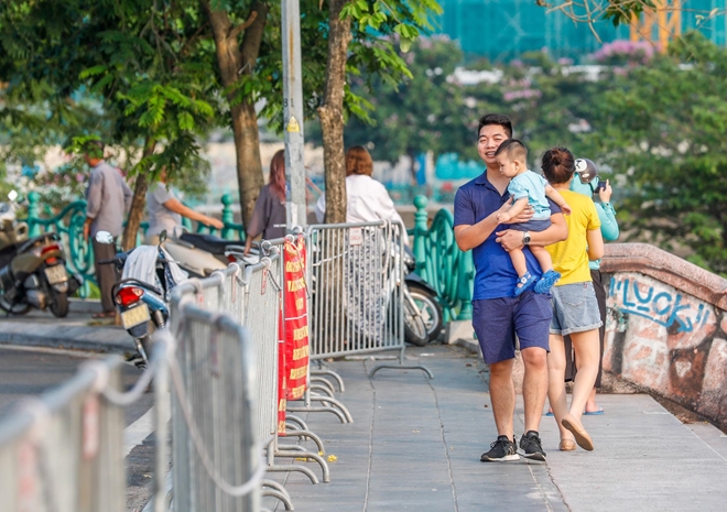 | Người lớn bế theo cả trẻ nhỏ ra "chung vui". |