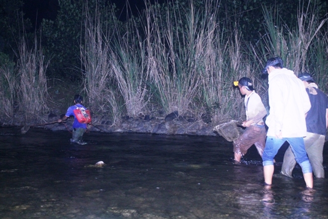 Chuyến săn đêm thật sự kịch tính khi cả nhóm phát hiện một con con nhím đang mò xuống suối uống nước.