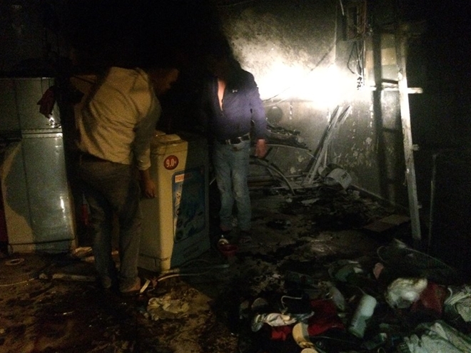 | Các vật dụng trong tiệm uốn tóc bị cháy hư hỏng. |