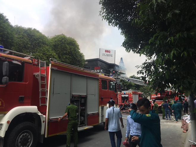 | Hàng trăm mét vuông của quán nướng bị cháy và hư hỏng |