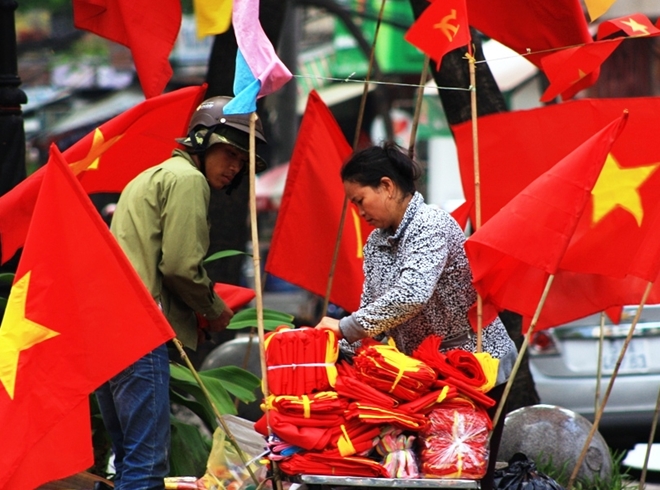 | Một người bán cờ tổ quốc trên đường phố TP HCM. |