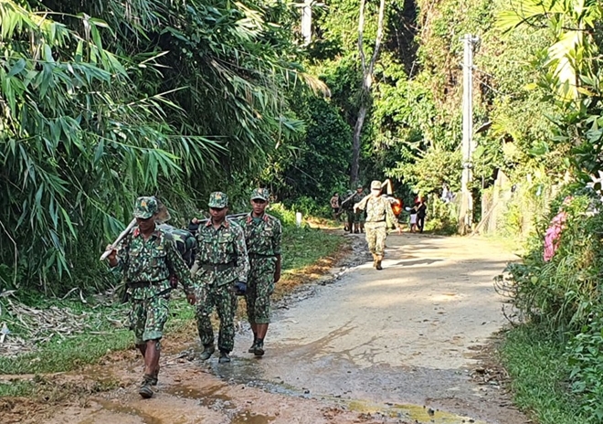 | Lực lượng quân đội đi bộ vào Trà Leng |