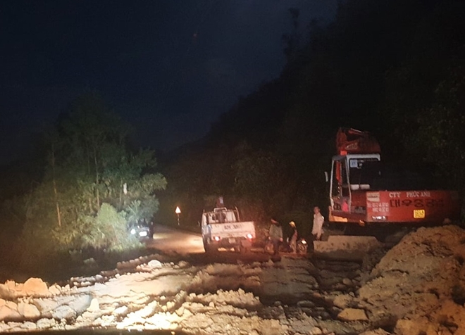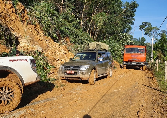 | Đường vào nóc Ông Đề còn 2 điểm sạt lở lớn |
