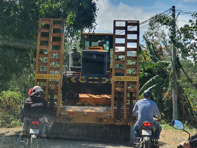 | Quân đội đã đưa nhiều phương tiện mở đường vào hiện trường |