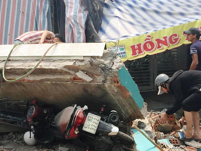Khoảng 13h ngày 28-2, một nhóm công nhân tháo dỡ căn nhà cũ số 35, Hùng Vương, phường 4, quận 5, TP Hồ Chí Minh (đoạn ngay giao lộ Hùng Vương-Trần Bình Trọng) thì bất ngờ khối bê tông nặng hàng tấn này ngã ra đường. Một số người đang đứng gần hiện trường tháo dỡ căn nhà hoảng hốt tháo chạy.