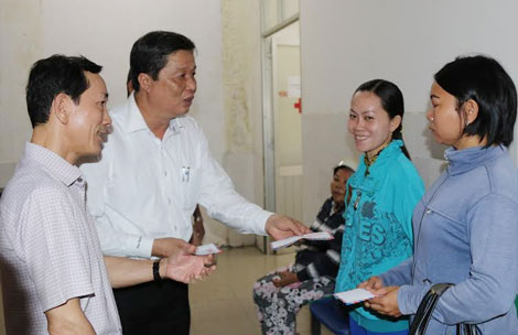 | Lãnh đạo Thành ủy Cần Thơ đến bệnh viện chia sẻ, hỗ trợ thân nhân những công nhân bị thương đang cấp cứu trong Bệnh viện Quân y 121. |