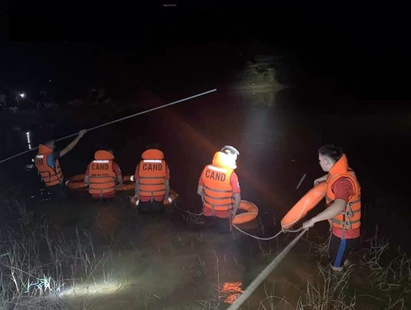 Ngay lập tức, phòng Cảnh sát PCCC&CNCH đã điều động 13 cán bộ, chiến sĩ cùng các phương tiện chuyên dụng khẩn trương tới hiện trường, phối hợp Công an Thị xã Thái Hòa tổ chức tìm kiếm nạn nhân.