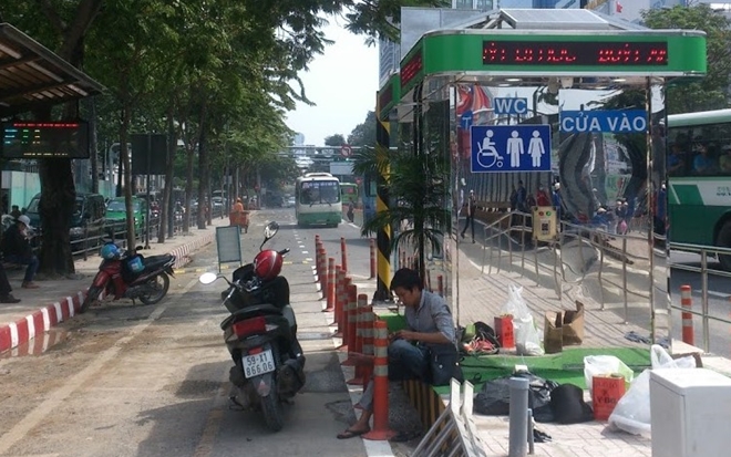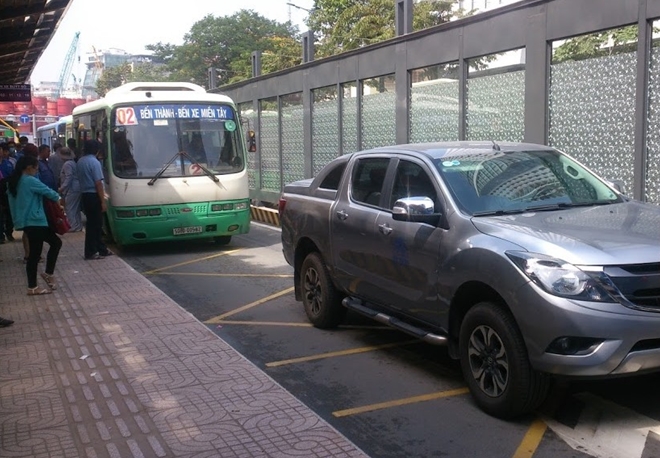 | Khu vực dành riêng cho xe buýt nhưng các phương tiện khác vẫn cố tình đi qua trạm trung chuyển hành khách này |