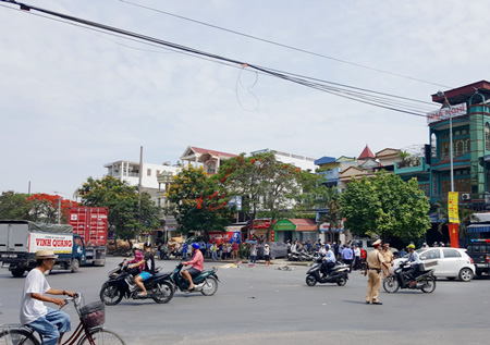 Vào 9h cùng ngày, xe container BKS 15C-208.27 kéo theo rơ mooc 15R-111.26, do Nguyễn Huy Biển, 38 tuổi, ĐKTT thôn Đông An, xã Tam Cường, huyện Vĩnh Bảo (Hải Phòng) điều khiển, lưu thông theo hướng vào nội thành, đến khu vực ngã 4 Lê Lai -Lê Thánh Tông thuộc địa phận phường Máy Chai, quận Ngô Quyền, khi vào cua không quan sát đã cuốn một người đàn ông đi xe đạp cùng chiều vào gầm xe tử vong.