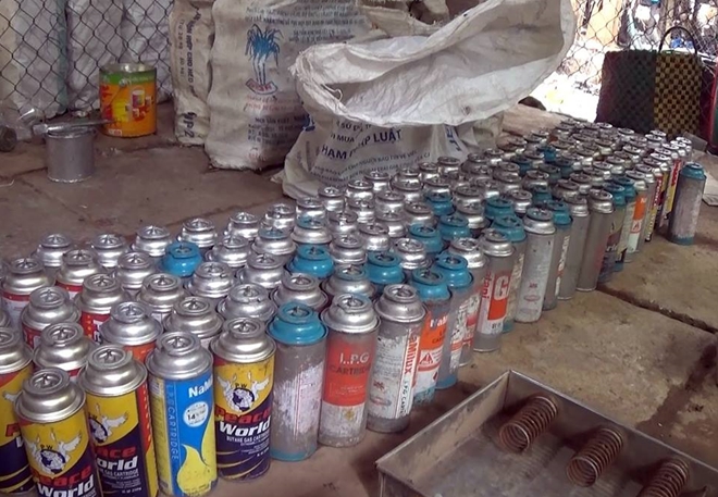 Theo lời khai của những người sang chiết gas trái phép này thì các bình gas mini trên được gom từ các cửa hàng tạp hóa, quán ăn, quán nhậu về sau đó được sơn lại.