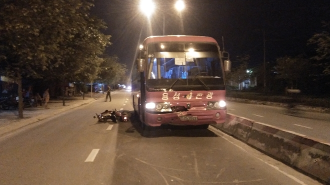 Người phụ nữ điều khiển xe máy chở cháu gái đi học về băng ngang đường đã va chạm với xe đưa rước công nhân. Người phụ nữ và cháu gái bị xe khách đẩy đi hàng chục mét, cháu gái bị rơi vào gầm xe nguy kịch…