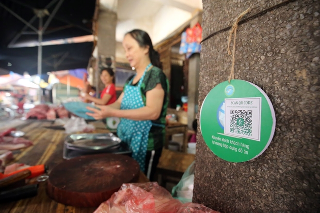 Nhằm ủng hộ phong trào chống rác thải nhựa, Chợ Nhớn (TP Bắc Ninh) với khoảng 270 tiểu thương kinh doanh tại đây cùng nhau nói không với túi nilon, khuyến khích người mua hàng tự mang theo hộp đựng.