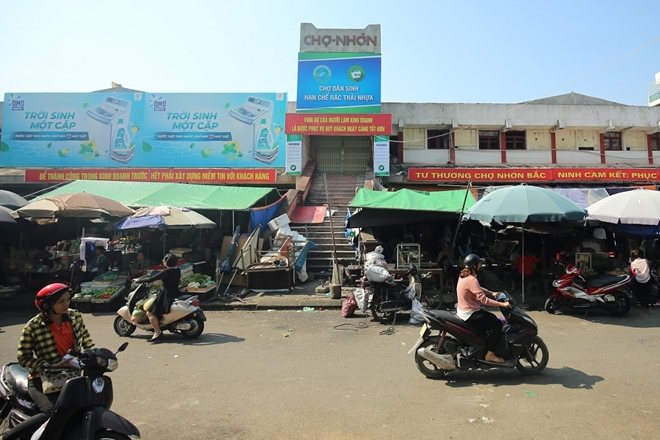 | Chợ Nhớn là khu chợ dân sinh lớn tại TP Bắc Ninh, đây là chợ đầu tiên tại miền Bắc thực hiện thí điểm giảm thải rác thải nhựa. |