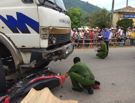 Hiện trường cho thấy, ô tô tải BKS 76K - 5057 chạy từ hướng TP Quảng Ngãi lên huyện Ba Tơ chở gỗ dăm chưa rõ người điều khiển. Khi đến đoạn đường trên, xe tải bất ngờ lấn sang phần đường ngược chiều cán vào xe máy BKS 76K1-0220 do anh Lê Văn Diệp, 36 tuổi, chở vợ là Trần Việt Nhật, 30 tuổi, cùng 2 đứa con nhỏ là Lê Quốc Thái, 4 tuổi và Lê Trần Trâm Anh, 7 tuổi, đều ở thị trấn Ba Tơ, huyện Ba Tơ.