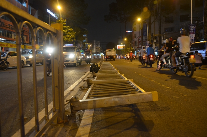 Bất ngờ chiếc xe tăng ga húc sập hơn 20m dải phân cách bằng sắt giữa đường và tông vào xe 4 chỗ BKS 51F-297.03 sau đó lao đầu vào hẻm 275 trần Phú. Lúc này một người phụ nữ đang nhặt ve chai trong hẻm không chạy kịp đã bị xe 16 chỗ ép vào cột điện.