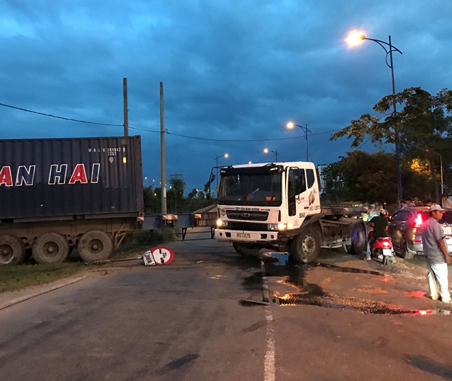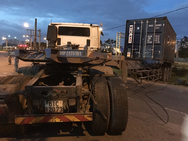Khoảng 18h ngày 1-1, xe đầu kéo BKS 61C-120.73 kéo rơ-mooc chở thùng container loại 20feet lưu thông trên đường Đồng Văn Cống (hướng từ cảng Cát Lái về đường Mai Chí Thọ).