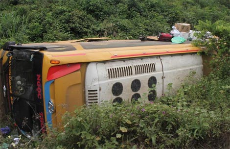 | Xe khách BKS 75B 00600 lật xuống vực. |