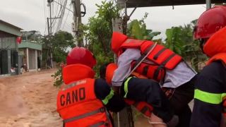 Công an kịp thời cứu 2 người dân bị kẹt giữa dòng nước lũ chảy siết