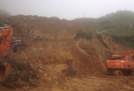 | Hiện trường vụ lở núi khiến 7 người trong gia đình ông Triệu Sành Khôn gặp nạn. |