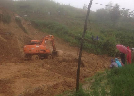 | Các lực lượng chức năng Cao Bằng phải huy động máy xúc, máy ủi cỡ lớn để đào bới, thu dọn hàng vạn khối đất đá để tìm, cứu các nạn nhân bị vùi lấp sau vụ lở núi. |