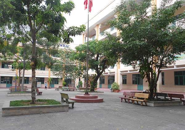 | Trường THCS Phan Bội Châu, quận Tân Phú, nơi xảy ra sự việc. |
