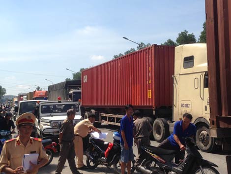 Cú va chạm mạnh khiến anh Hòa ngã xuống đường, bị bánh xe container cán qua đầu tử vong tại chỗ. Tại hiện trường, thi thể anh Hòa nằm cạnh bánh xe, đồ đạc của nạn nhân văng khắp mặt đường.