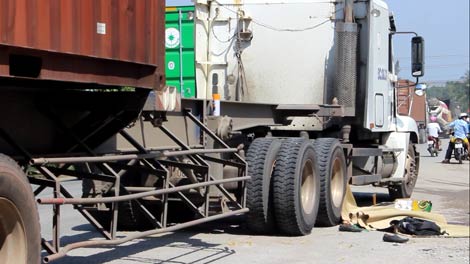 Cú va chạm mạnh khiến người thanh niên trên đường đi làm ngã xuống đường, bị bánh xe container cán qua đầu tử vong tại chỗ.