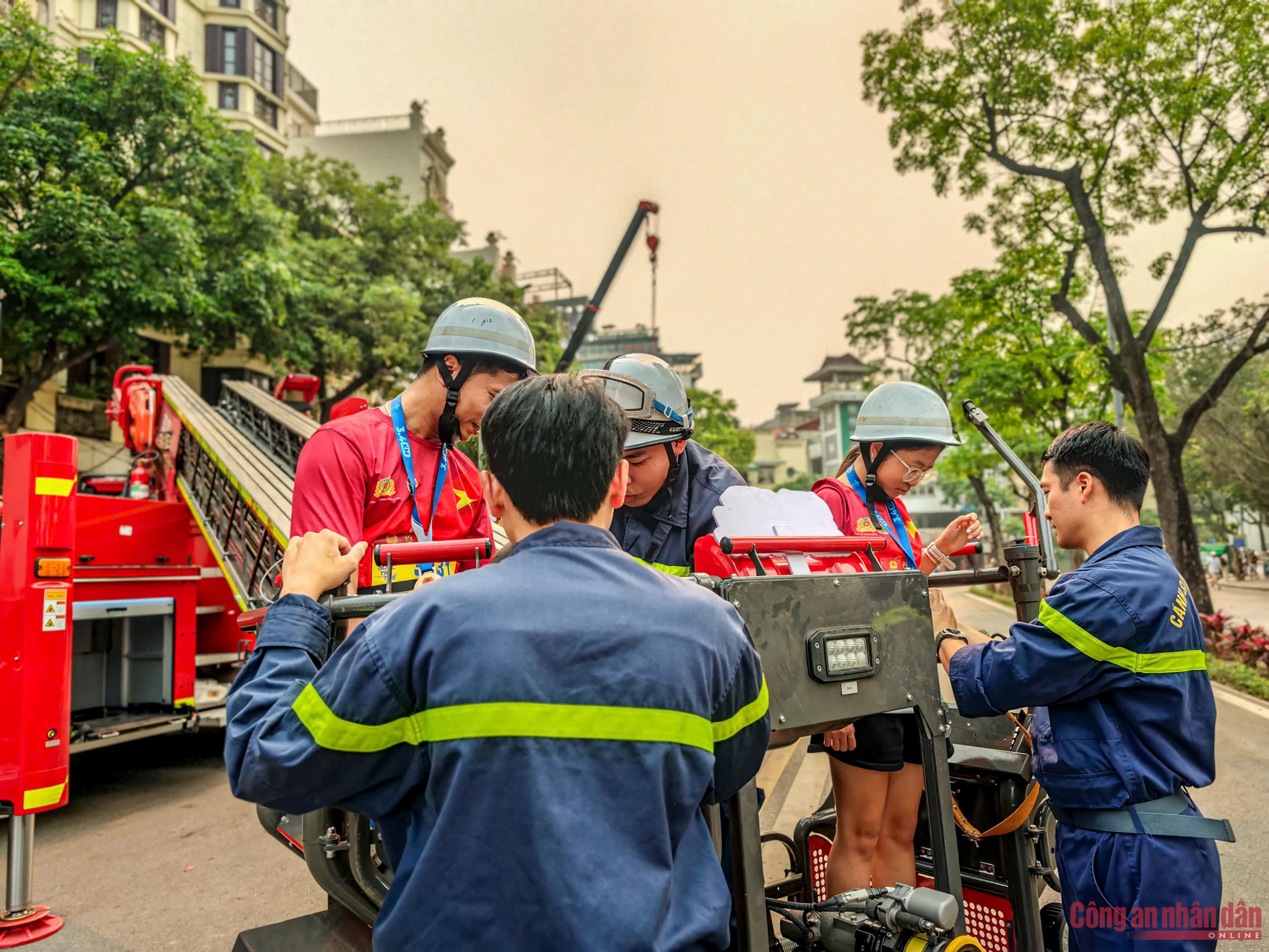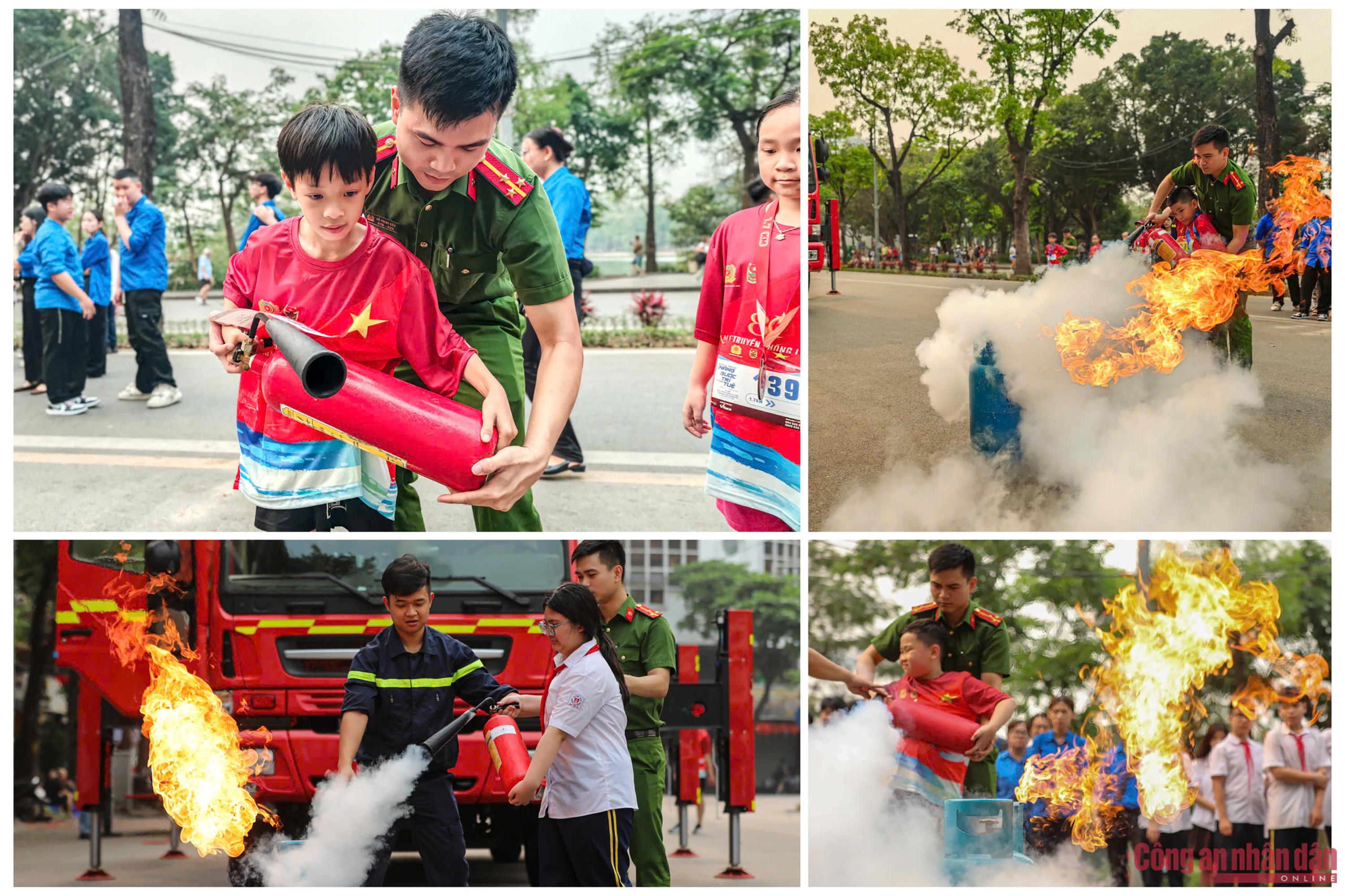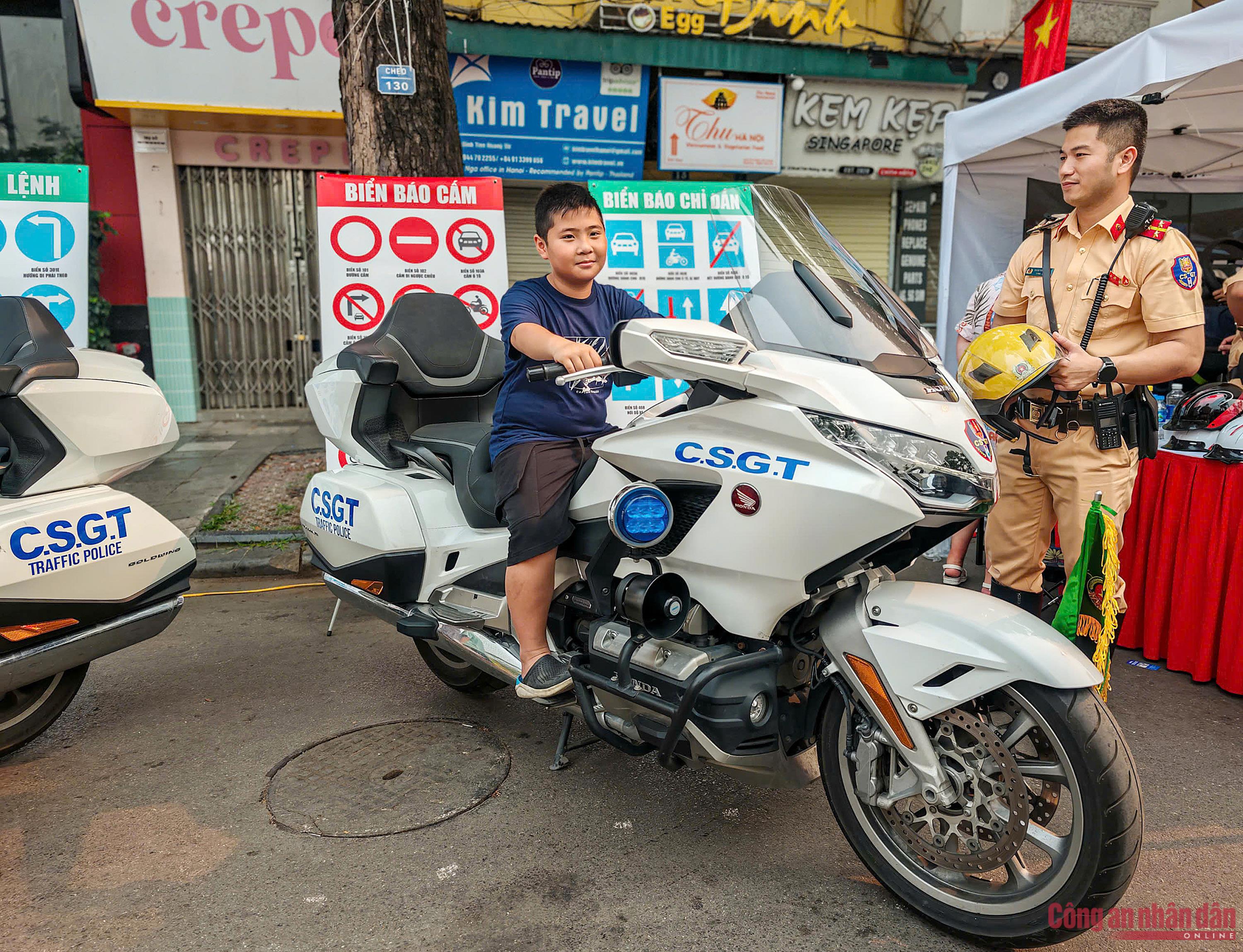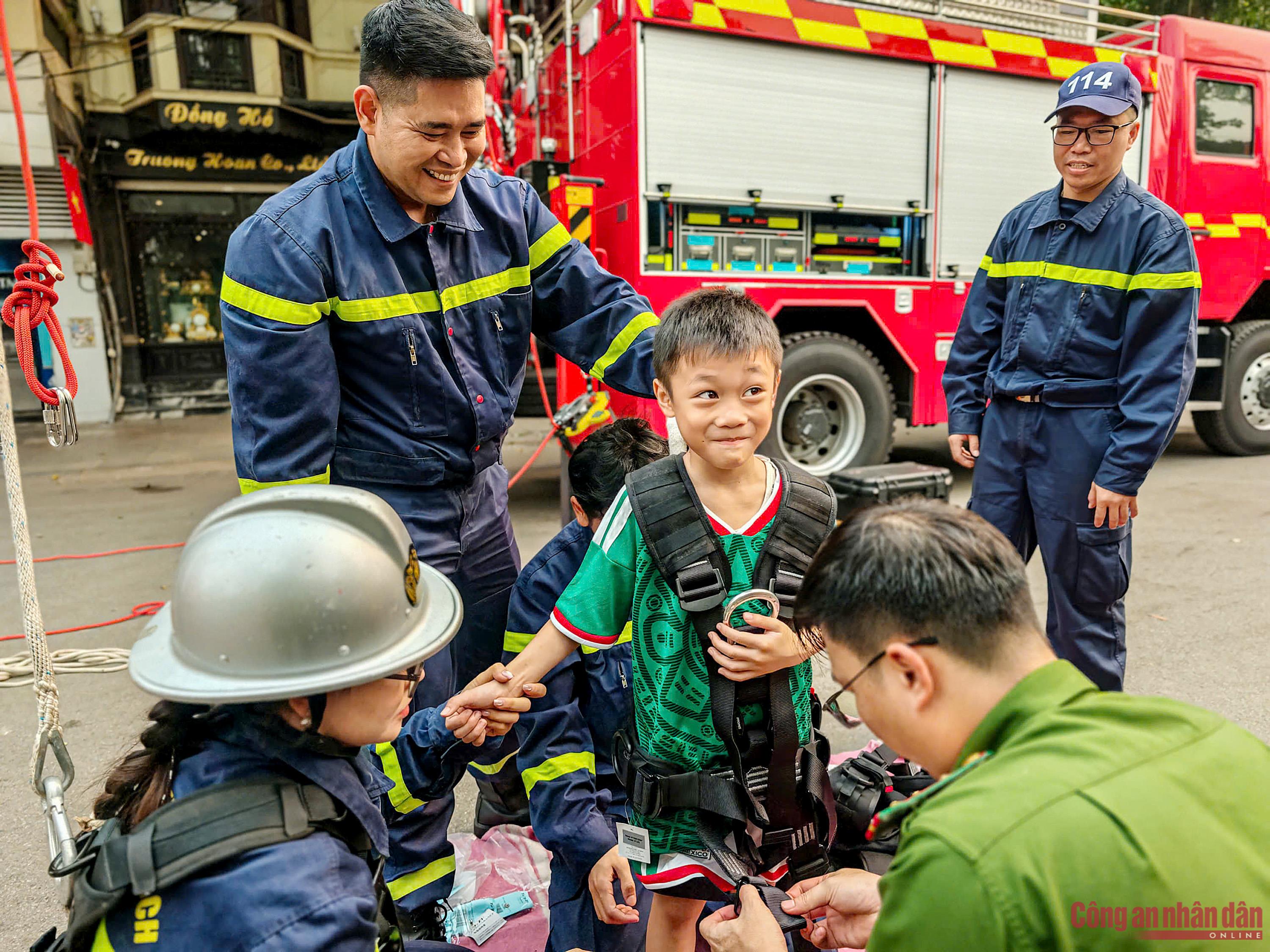 Học sinh cùng du khách hào hứng với trải nghiệm làm chiến sĩ CSGT và PCCC