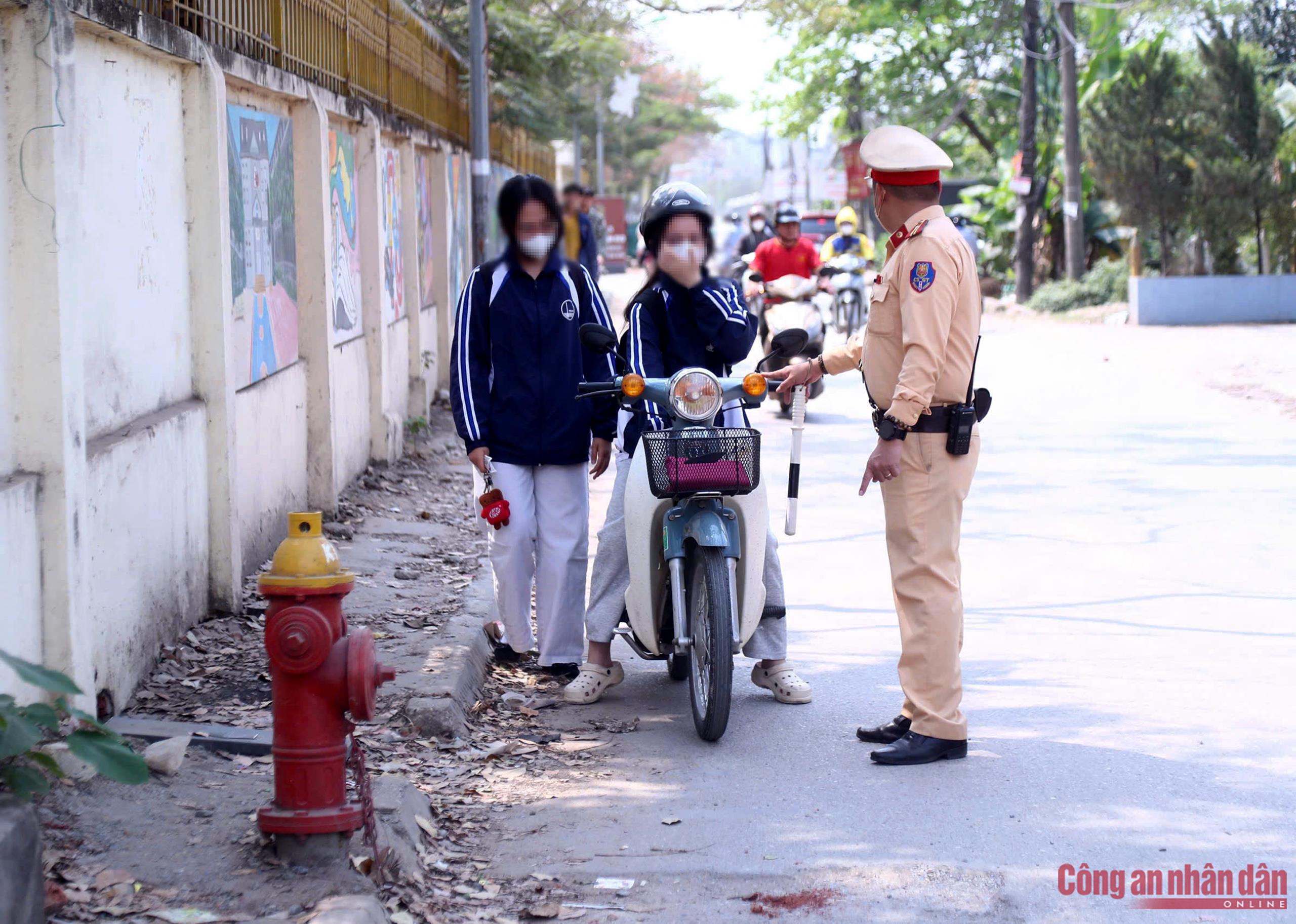 Ngoài ra, cùng với hoạt động kiểm soát xe đưa đón học sinh, lực lượng CSGT cũng tổ chức tuần tra lưu động, xử lý các trường hợp học sinh và phụ huynh vi phạm TTATGT tại khu vực cổng trường trên địa bàn phường Từ Liêm (Hà Nội).