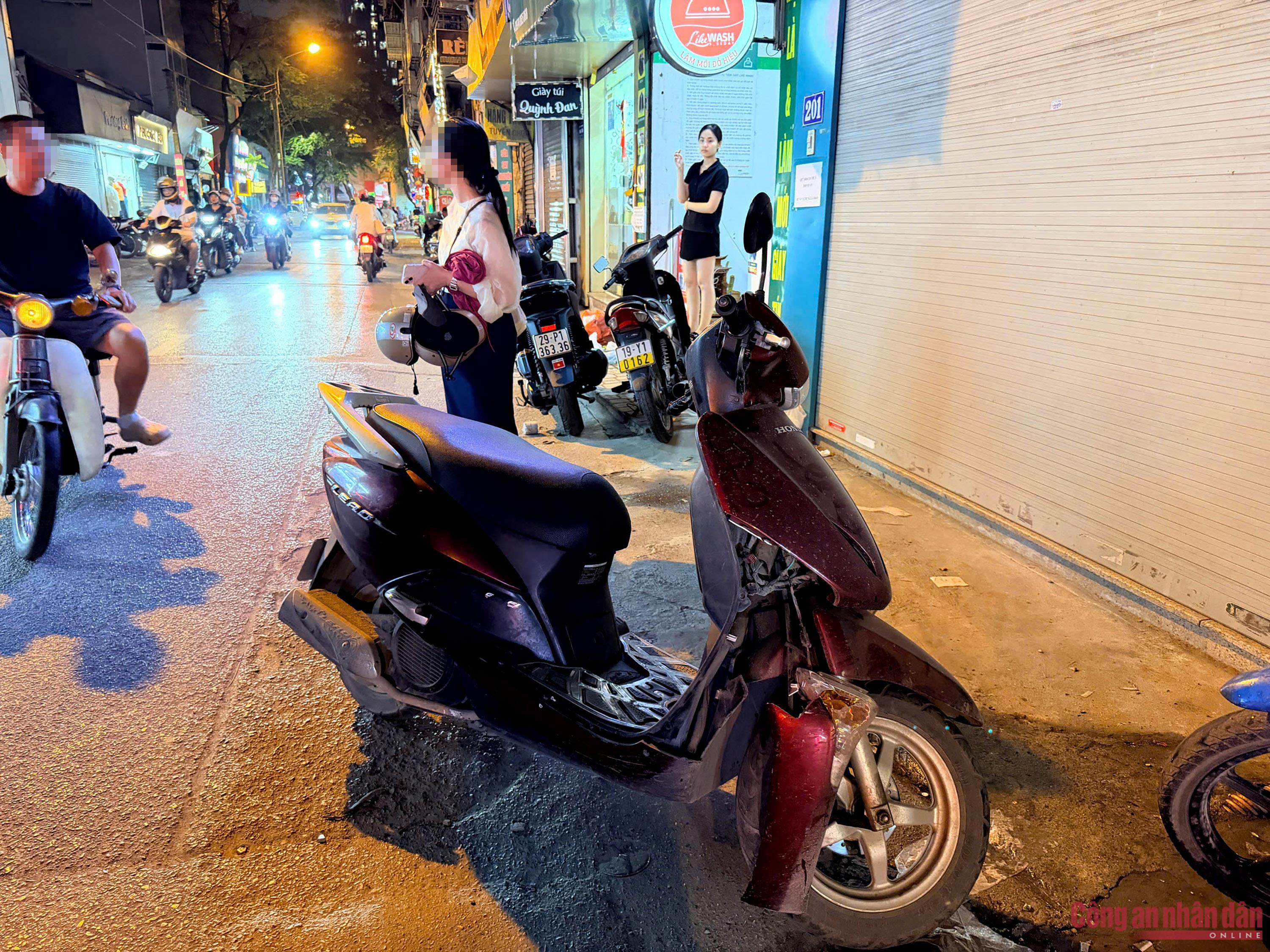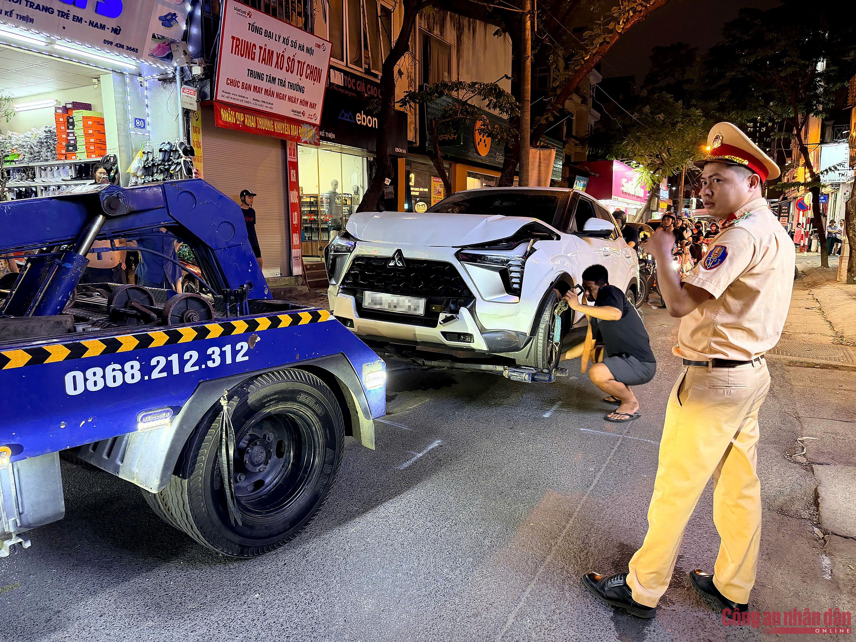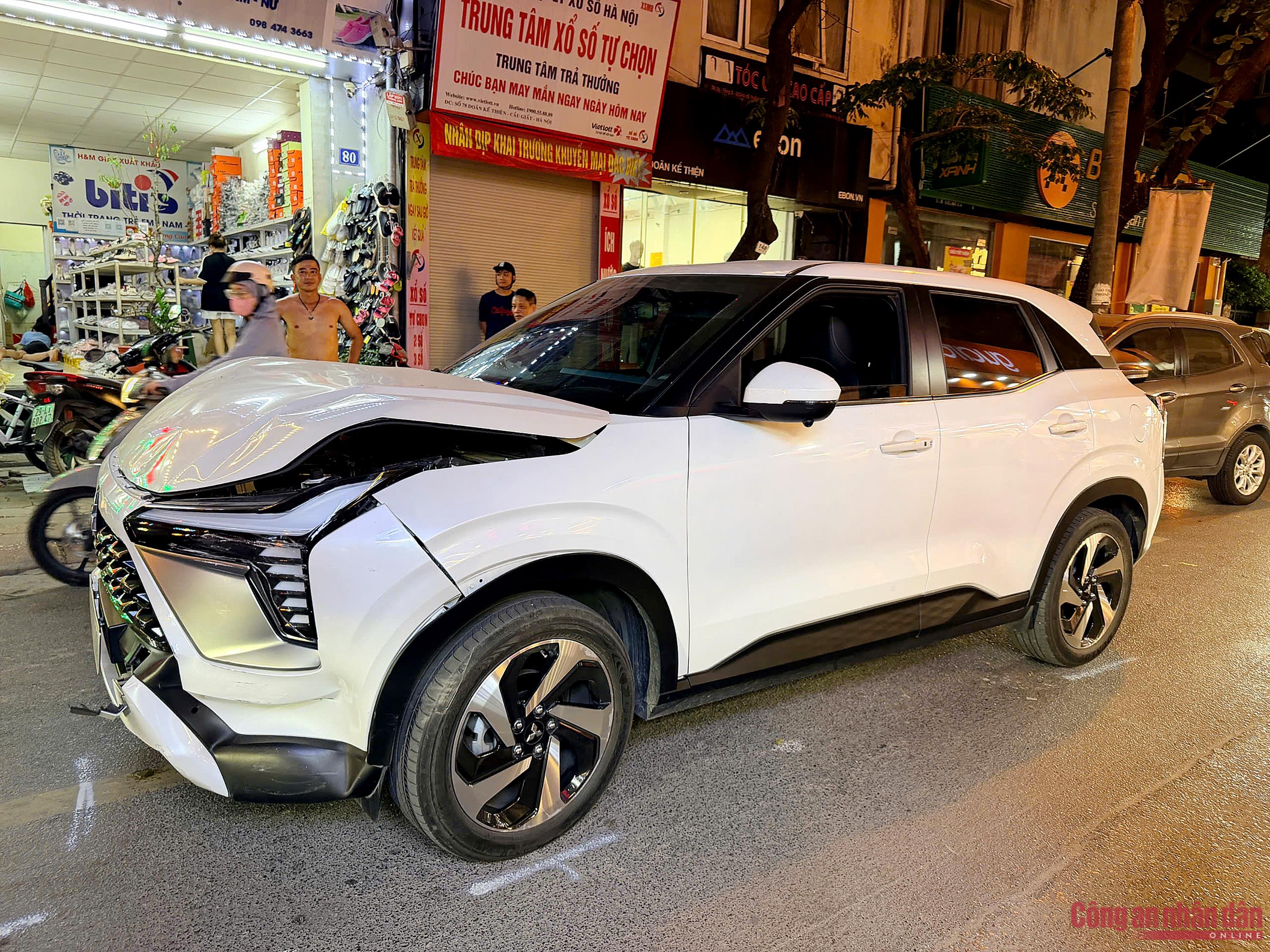 Khi chiếc ô tô này di chuyển đến trước số nhà 52 Doãn Kế Thiện thì bất ngờ đâm vào xe máy mang BKS: 18D1-741.XX do một nam thanh niên điều khiển và xe máy BKS: 29X3-075.XX do một phụ nữ điều khiển.