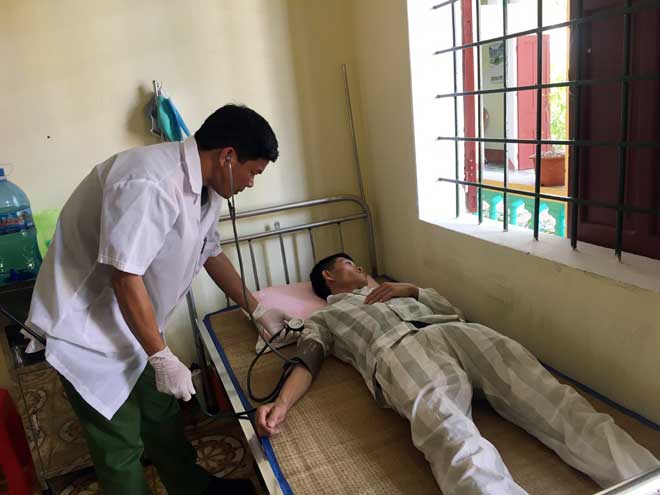 | Cán bộ y tế trại giam khám bệnh cho phạm nhân. |