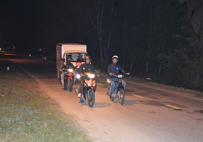 "Số điện thoại được đội đăng công khai trên facebook nhóm và một số băng rôn tại các ngã 3, ngã tư, trên xe để người đi đường biết đến và gọi lúc cần thiết", Nguyễn Văn Năm (22 tuổi, trú xã Bình Đào), Đội trưởng Đội cứu hộ S.O.S Thăng Bình cho hay. 21h, các thành viên đội cứu hộ bắt đầu lên đường. Bắt đầu đi dọc quốc lộ 14E xuống đường 129, các thành viên rẽ lên ngã 3 Cây Cốc, theo tuyến đường mới mở lên xã Bình Quý (Thăng Bình) rồi mới vòng xuống thị trấn Hà Lam, quốc lộ 1 để giúp người bị nạn.