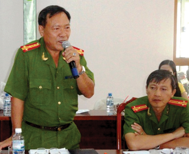 | Đại tá Mai Văn Tấn trong một lần họp bàn chuyện bắt cướp. |
