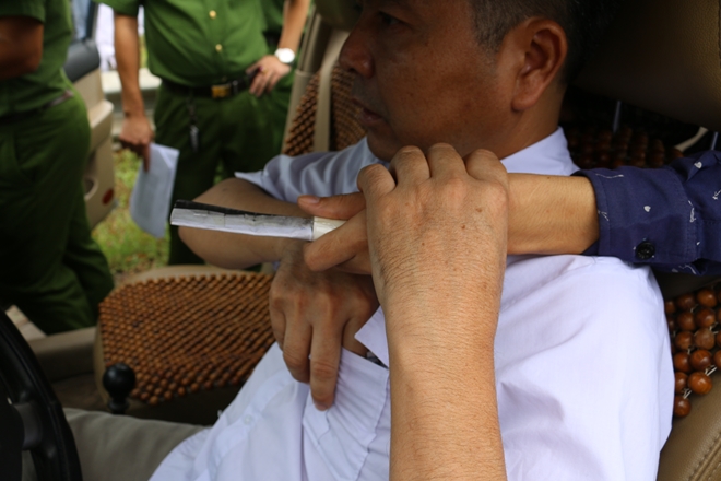 | Đối tượng Nguyễn Văn Nghĩa dùng dao khống chế tài xế taxi. |