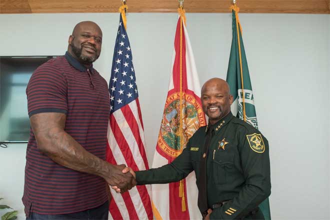 | Shaquille O'Neal chụp ảnh cùng Cảnh sát trưởng Tony của Hạt Broward. |
