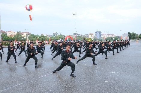 | Các chiến sĩ trẻ tham gia trình diễn võ thuật. |