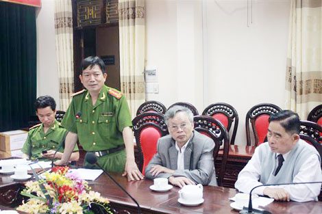 | Đại tá Mai Chiến Thắng (Phó trưởng Công an TP Vinh, Nghệ An) kể lại trận đánh ngày 28/2/2014 với đoàn nhà văn đi thực tế. |