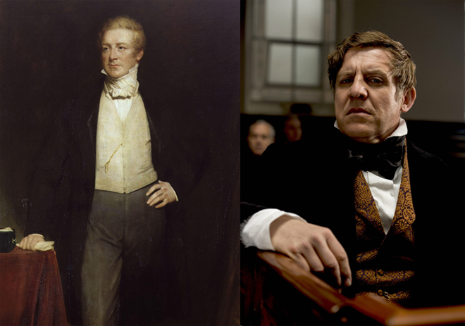 | Chân dung Sir Robert Peel qua tranh vẽ và hóa thân của diễn viên Nigel Lindsay. |
