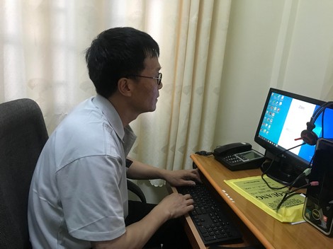 | Anh Vũ Xuân Trường làm việc thuần thục bằng máy tính. |